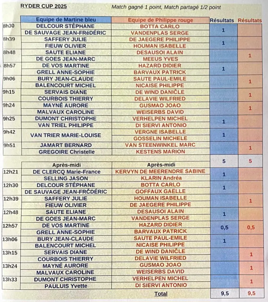 Ryder Cup LLN 2025 – Une égalité parfaite dans la bonne humeur !