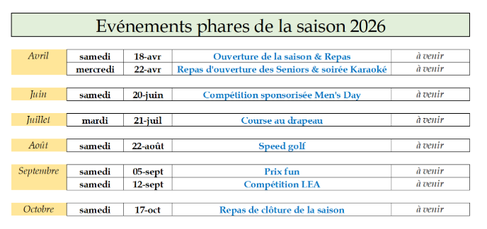 Les premières compétitions approchent et c’est avec plaisir que nous nous retrouverons tous sur le terrain, prêts à accueillir une nouvelle année golfique.