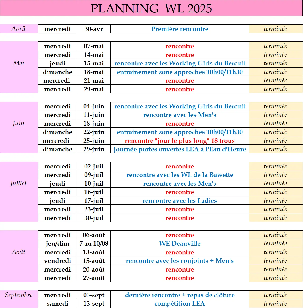Calendrier 2025
