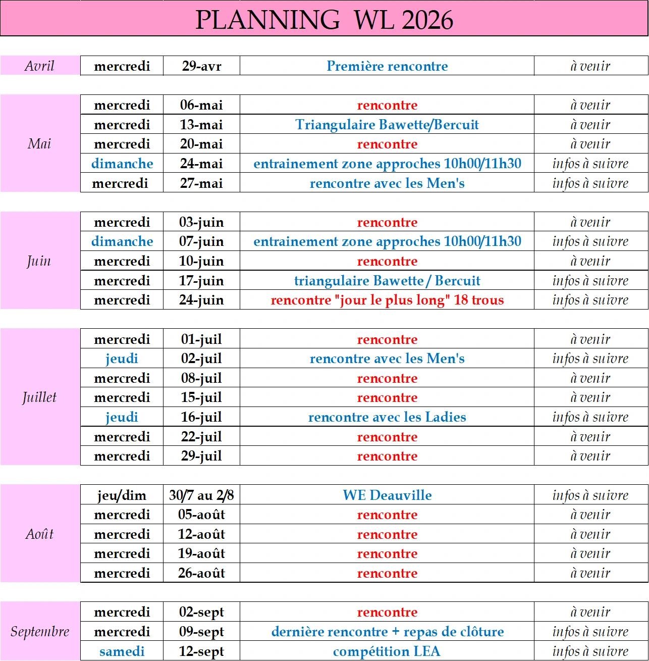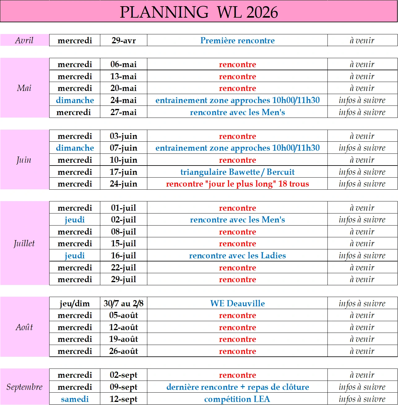 Calendrier 2026