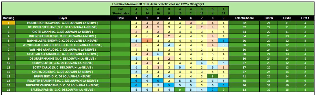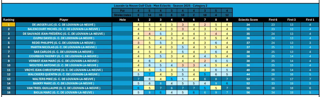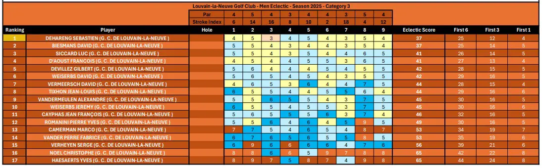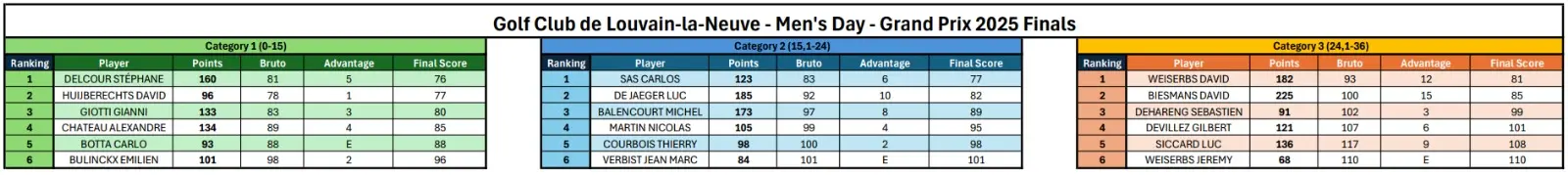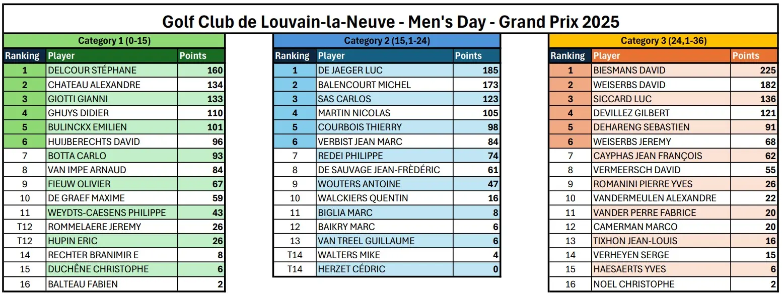 Scores & Classement des Men's