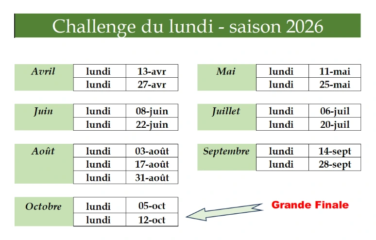 Voici les dates à noter dans vos agendas pour la saison 2026 :